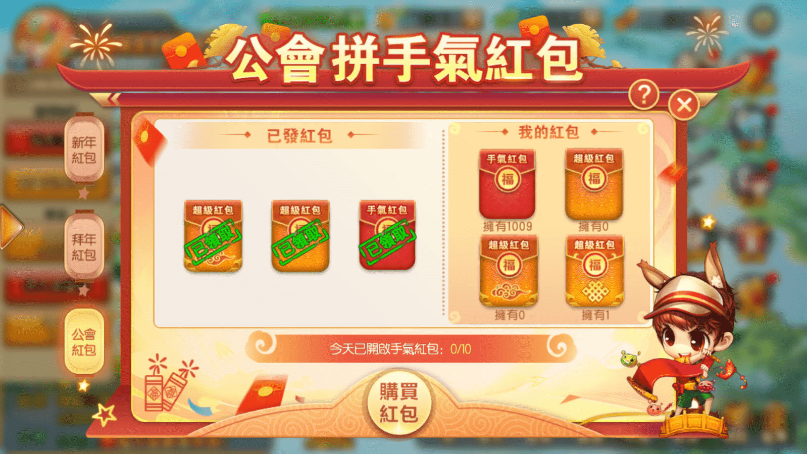 領紅包共分為三個紅包活動,新年紅包、拜年紅包、公會紅包