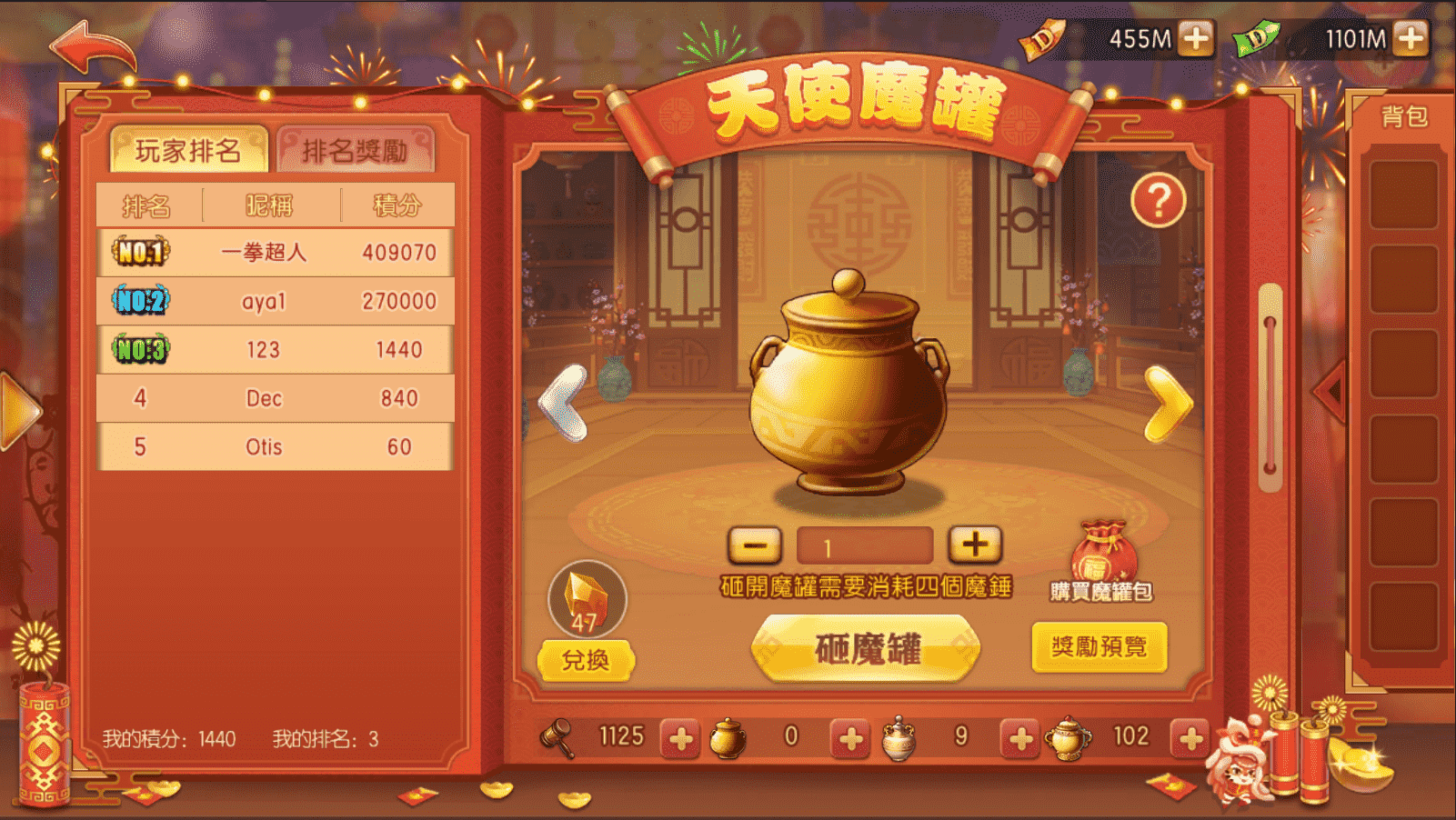 每砸開不同的魔罐均可獲得一定的積分,積分進行排名