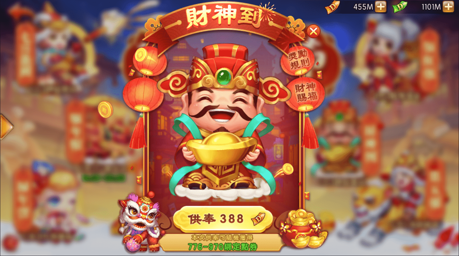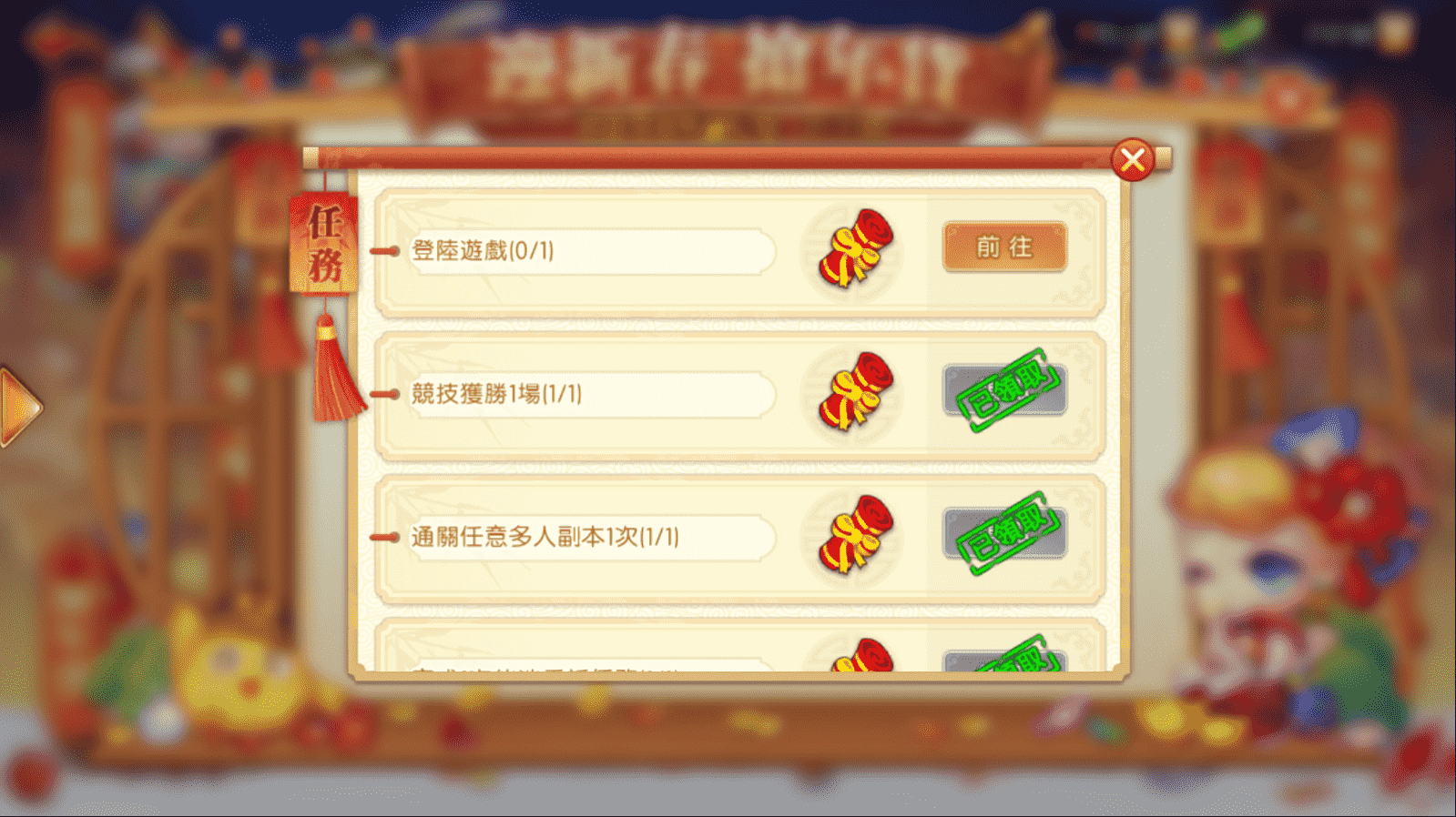新年紅包:活動需在煙火活動期間待於仙池內,每一分鐘可獲得新春紅包