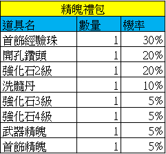 超級裝備寶箱及精魄禮包機率公告