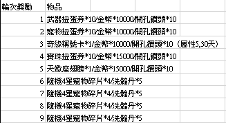 獎勵按照1-6品質組成12個獎勵,並按照機率出在占星獎勵中