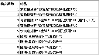 獎勵按照1-6品質組成12個獎勵,並按照機率出在占星獎勵中