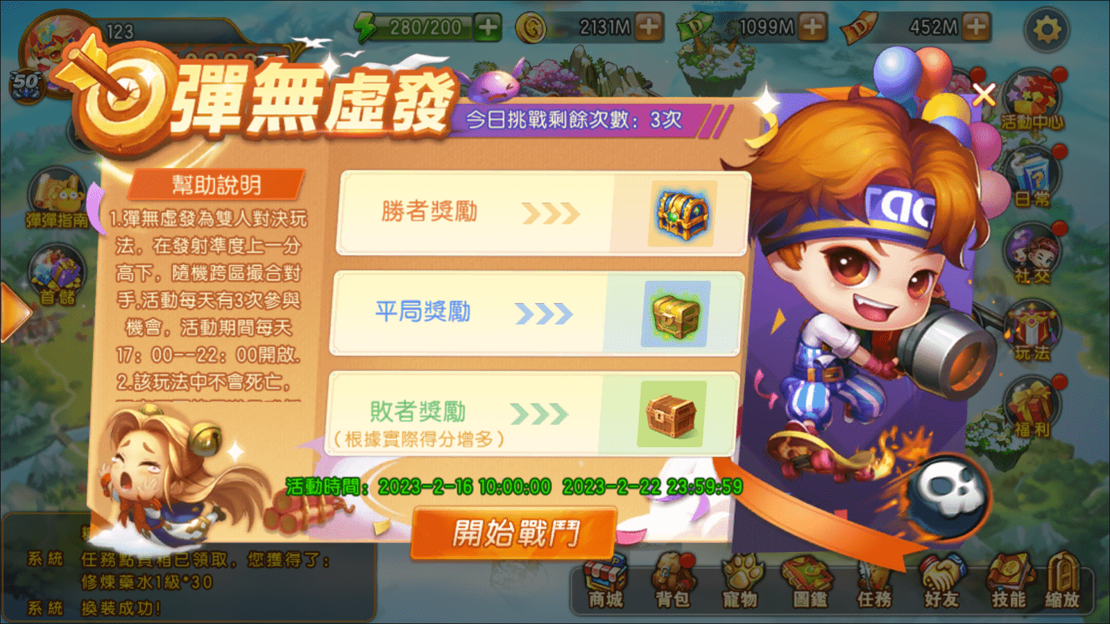 - 彈無虛發為雙人對決玩法,在發射準度上一分高下,隨機跨區配對對手