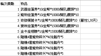 獎勵按照1-6品質組成12個獎勵,並按照機率出在占星獎勵中