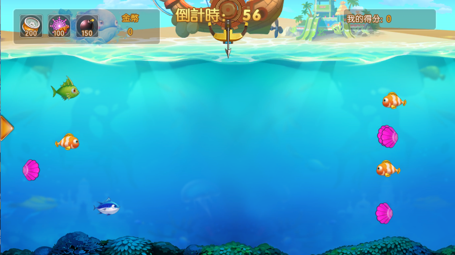 2.在弩箭飛行的過程中任意時機點擊螢幕,即可立即收回弩箭,弩箭回帶回發射時困住的所有魚類,成功回收可以獲得分數和金幣。(最高獲得1000積分)