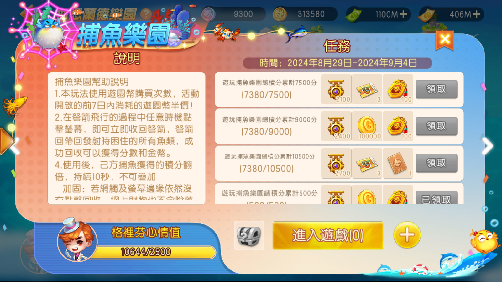 捕魚樂園:8/29 05:00:00~9/4 23:59:59