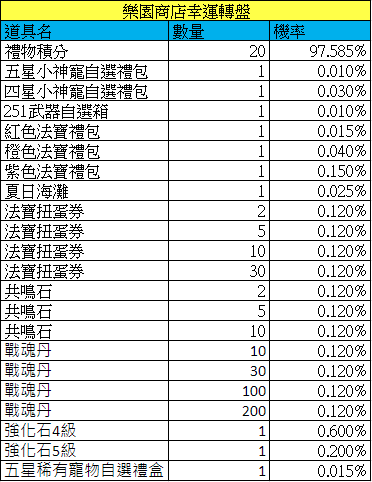 4.幸運輪盤活動期間每周日開啟,普通輪盤活動期間內均可參加抽獎