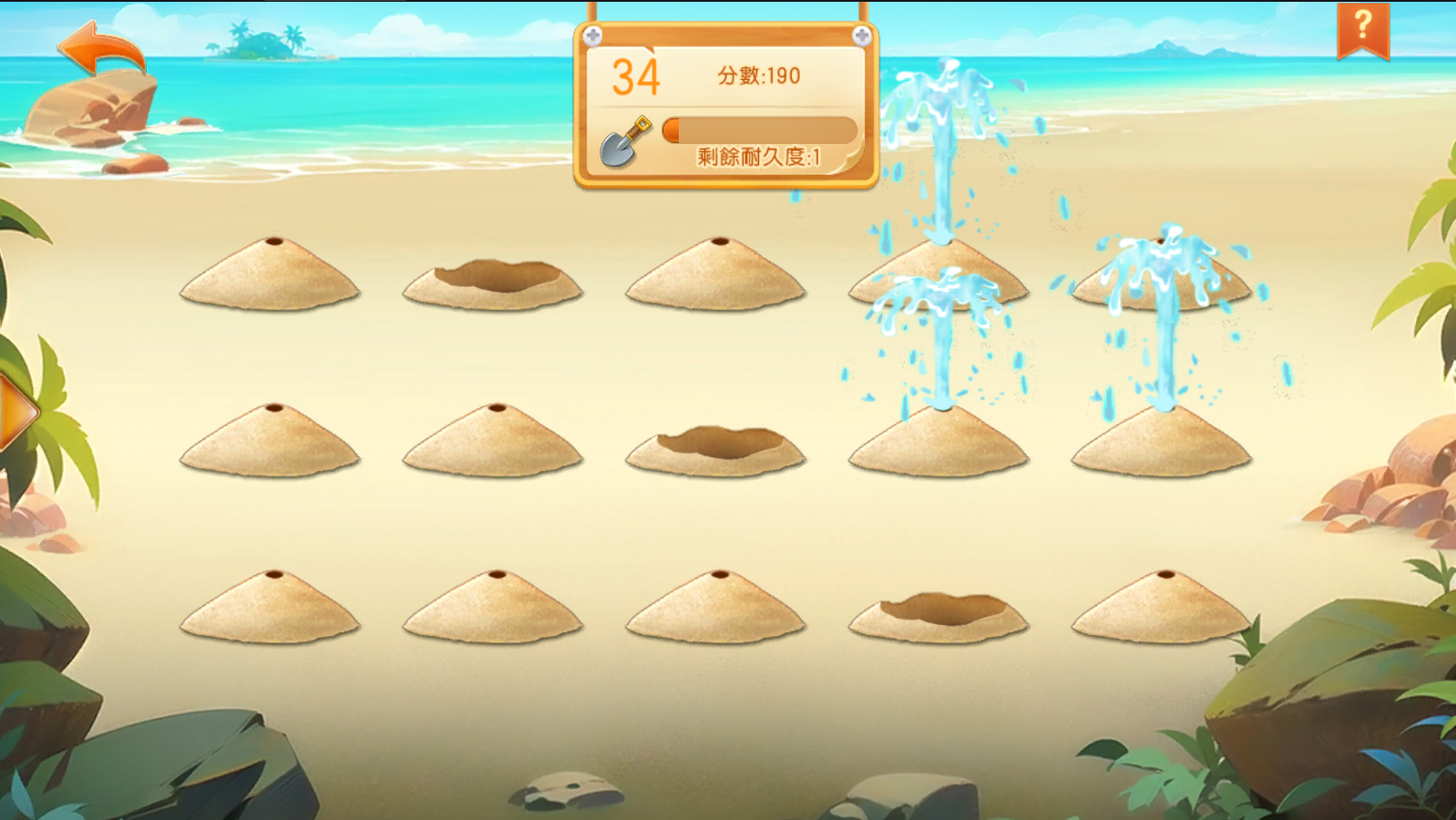 2.玩家通過點擊挖取沙堆獲取寶藏,沙堆會有不同的表現,對應可能出現的不同寶藏