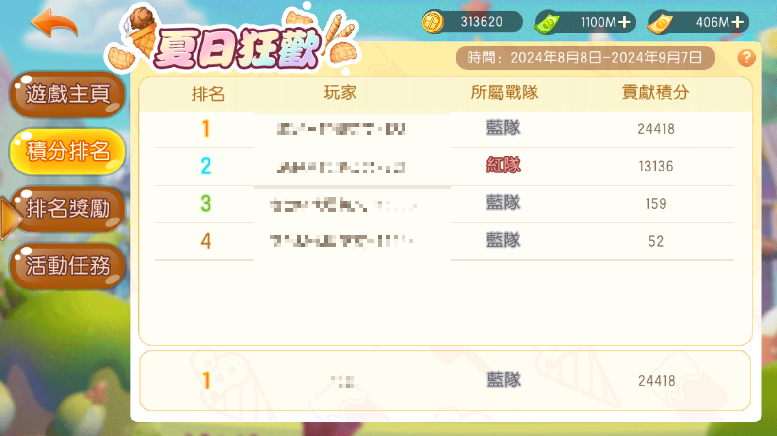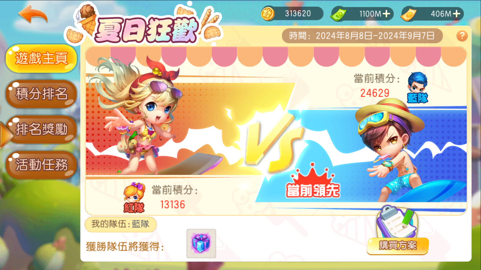 1.玩家首次進入樂園彈出夏日狂歡頁面,同時會被隨機分入紅隊或者藍隊