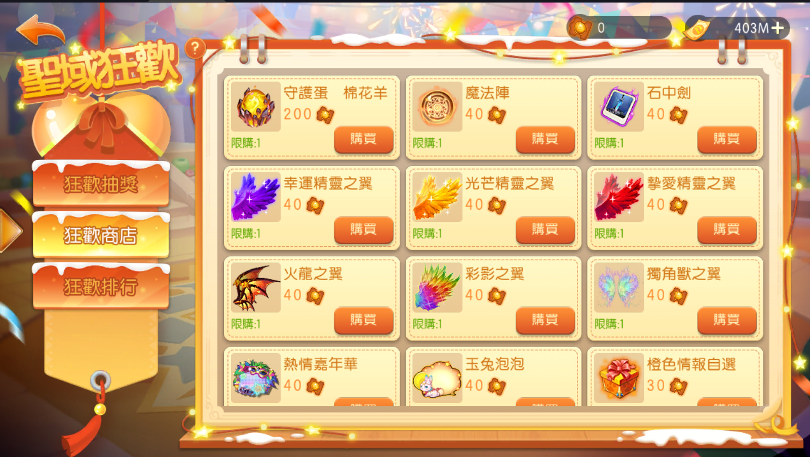 ※聖域系列活動結束後,祈願幣、狂歡兌換幣、折價券將不會留於下次活動,請注意活動時間。