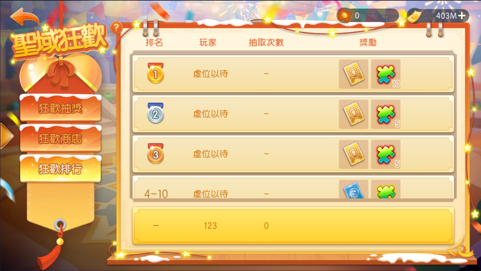 展示期不可抽取狂歡獎池、獲得抽獎次數,可於商店購買商品,請注意活動時間盡早使用抽獎次數
