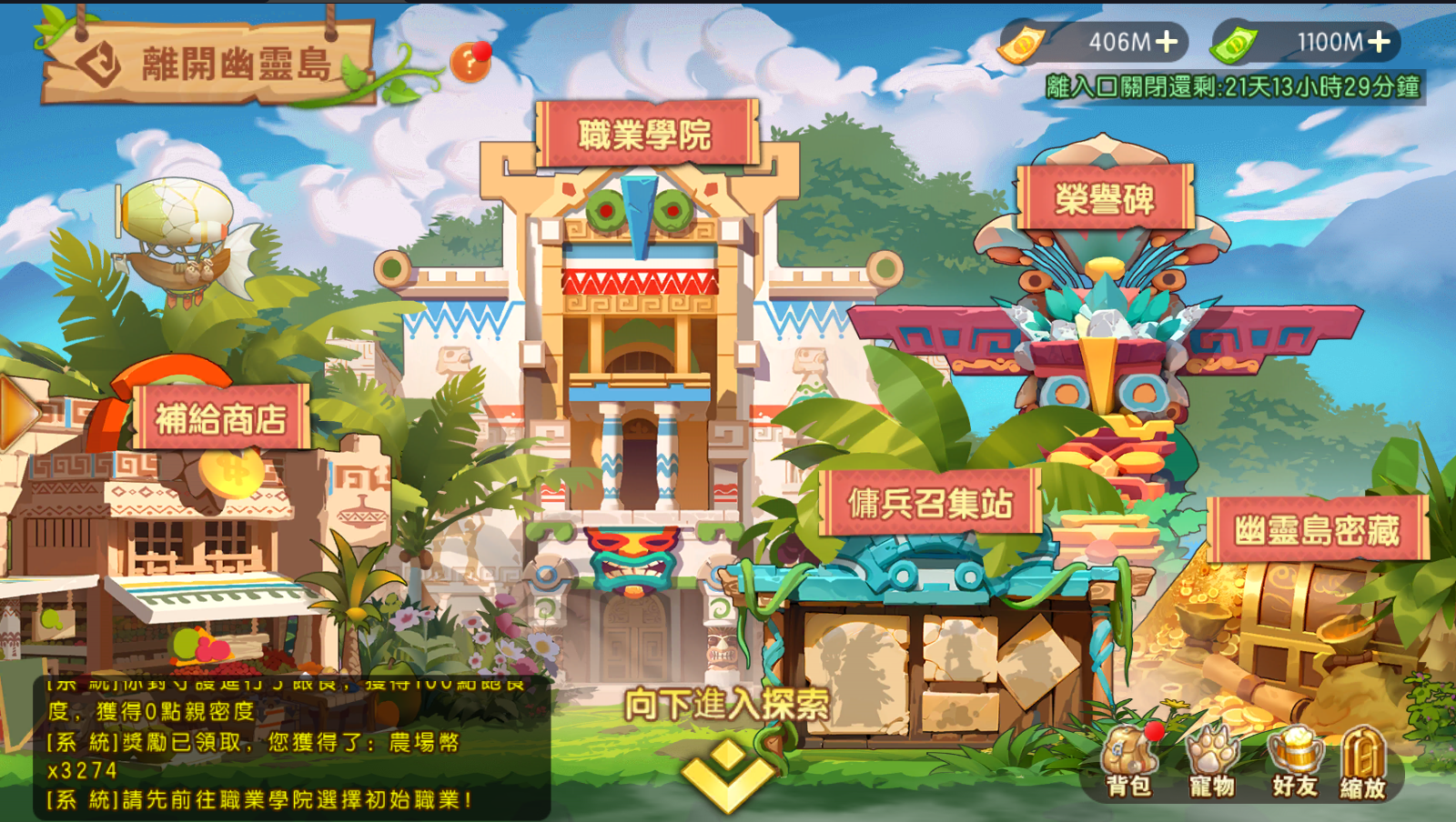 分為職業學院、傭兵召集站、幽靈島密藏、補給商店、榮譽碑