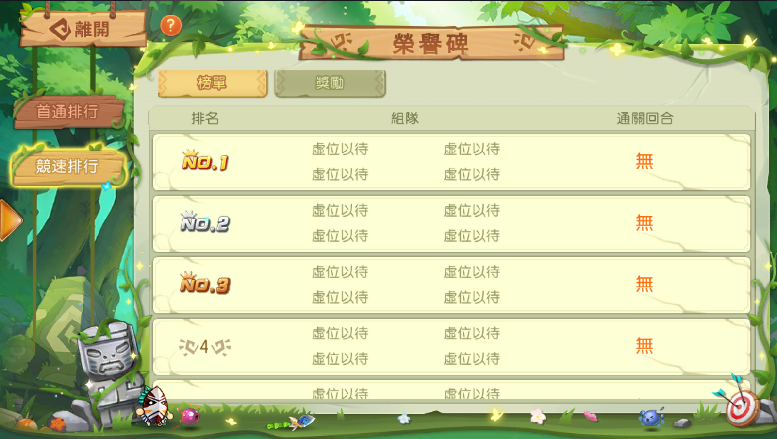 2.競速榜以通關所用的總回合數為計量,回合數越低,名次則越高,若同回合數,先達成的隊伍排名靠錢;同一支隊伍若再次挑戰後縮短了總回合數,將刷新自己在榜單上的紀錄