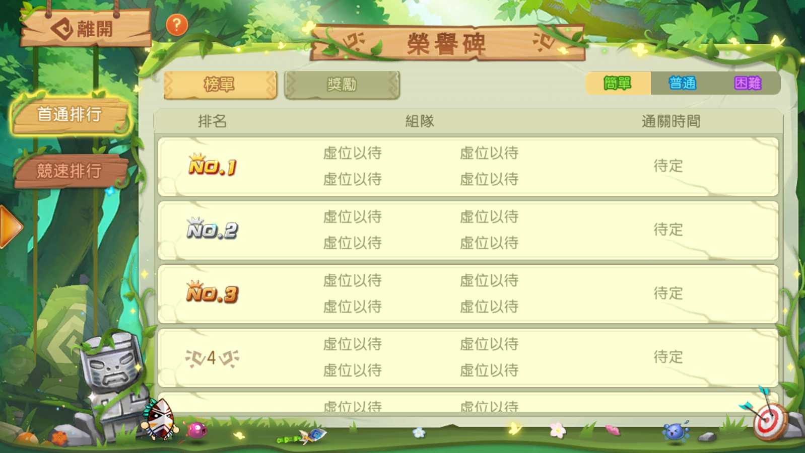 榮譽榜分為首通排行及競速排行,以下為榜單規則: