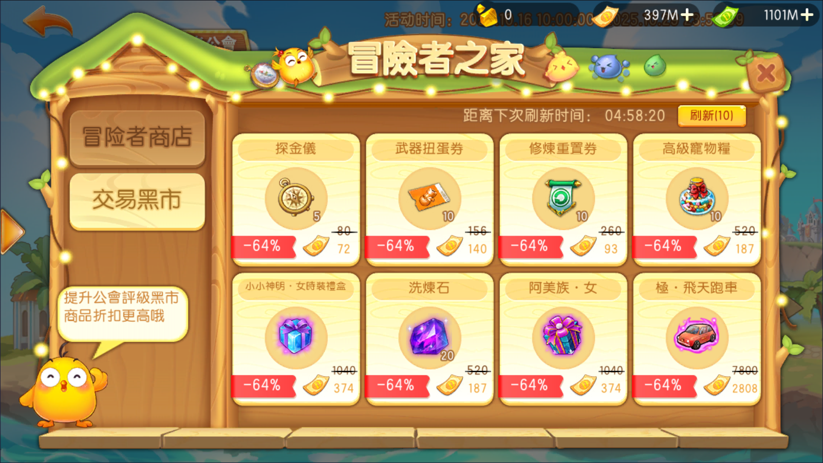 - 黑市原始為4折,可通過提升公會評級增加額外的折扣數