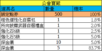 - 活動期間每儲值100公會點券,公會評級經驗增加30點,冒險者威望增加30點